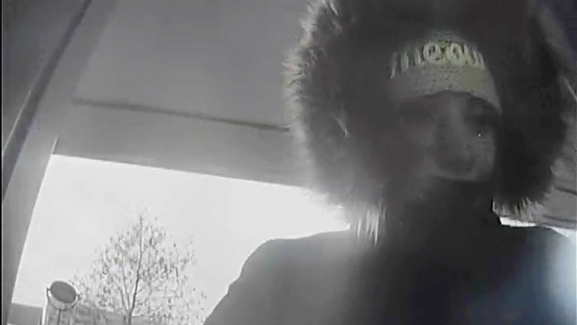 De vrouw op de beelden lijkt niet zo oud en draagt een opvallende muts of hoofdband met de opdruk ‘meow’. Laat het alstublieft aan de politie weten als u haar herkent.