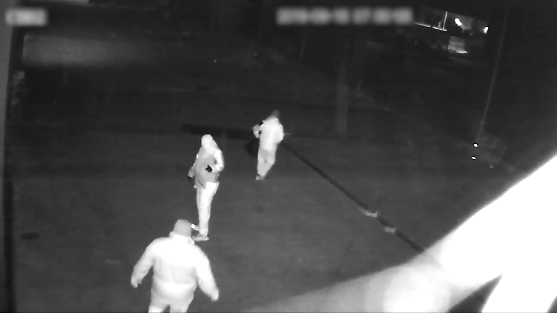 Rond 05.00 uur die ochtend kwamen de drie personen aan bij de loods van het bedrijf. Ze hadden alle drie een bivakmuts op. Afgaande op de bewakingsbeelden lijkt het of één van hen, gehuld in een Nike-jack, de leiding had.