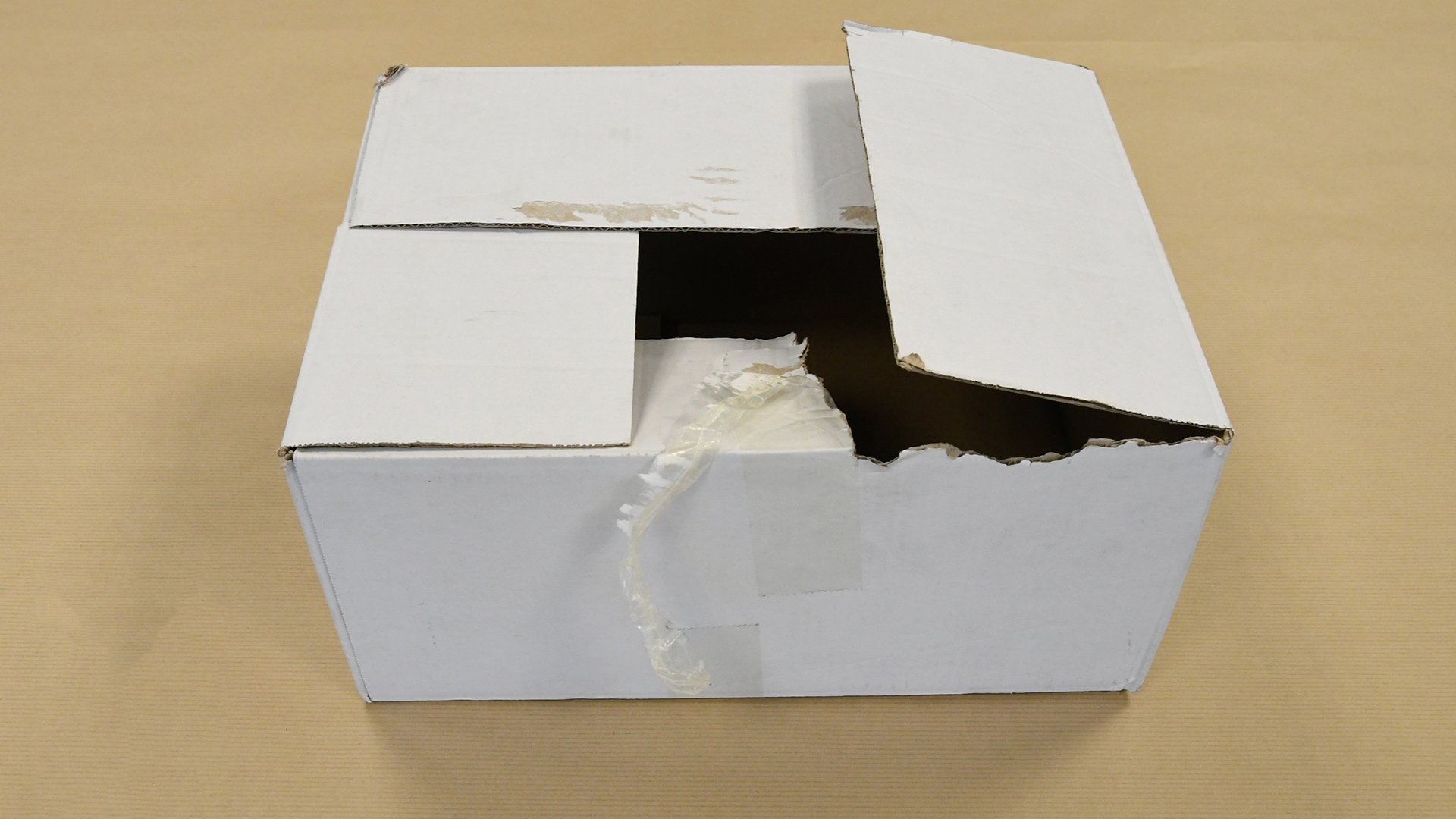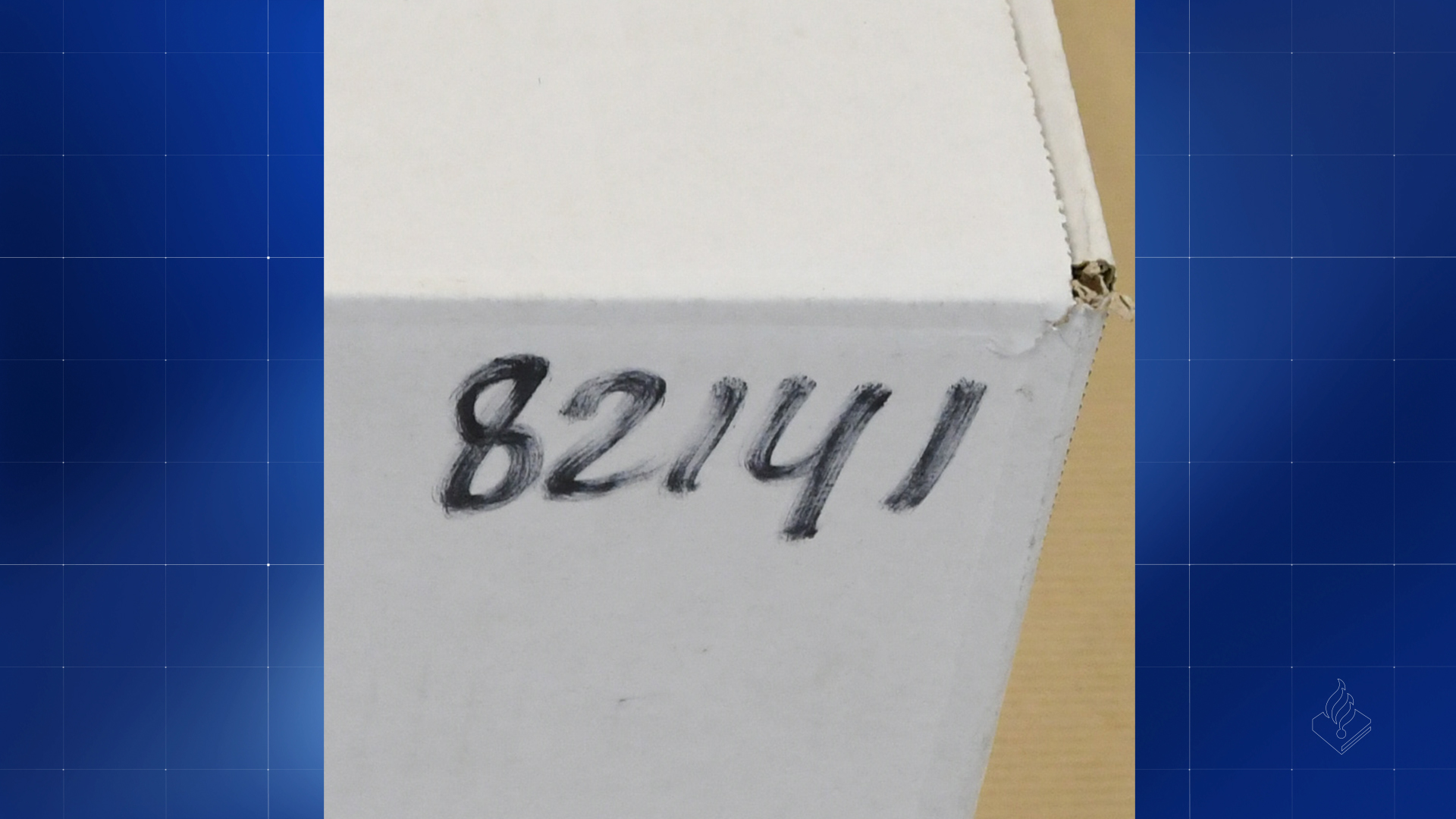 De zogenaamde bezorger liet een pakketje achter in de woning. Dit betreft een kartonnen doos met een bijzonder opschrift: een handgeschreven cijfercode. Herkent u het handschrift of weet u wat de code betekent, geef het alstublieft door.