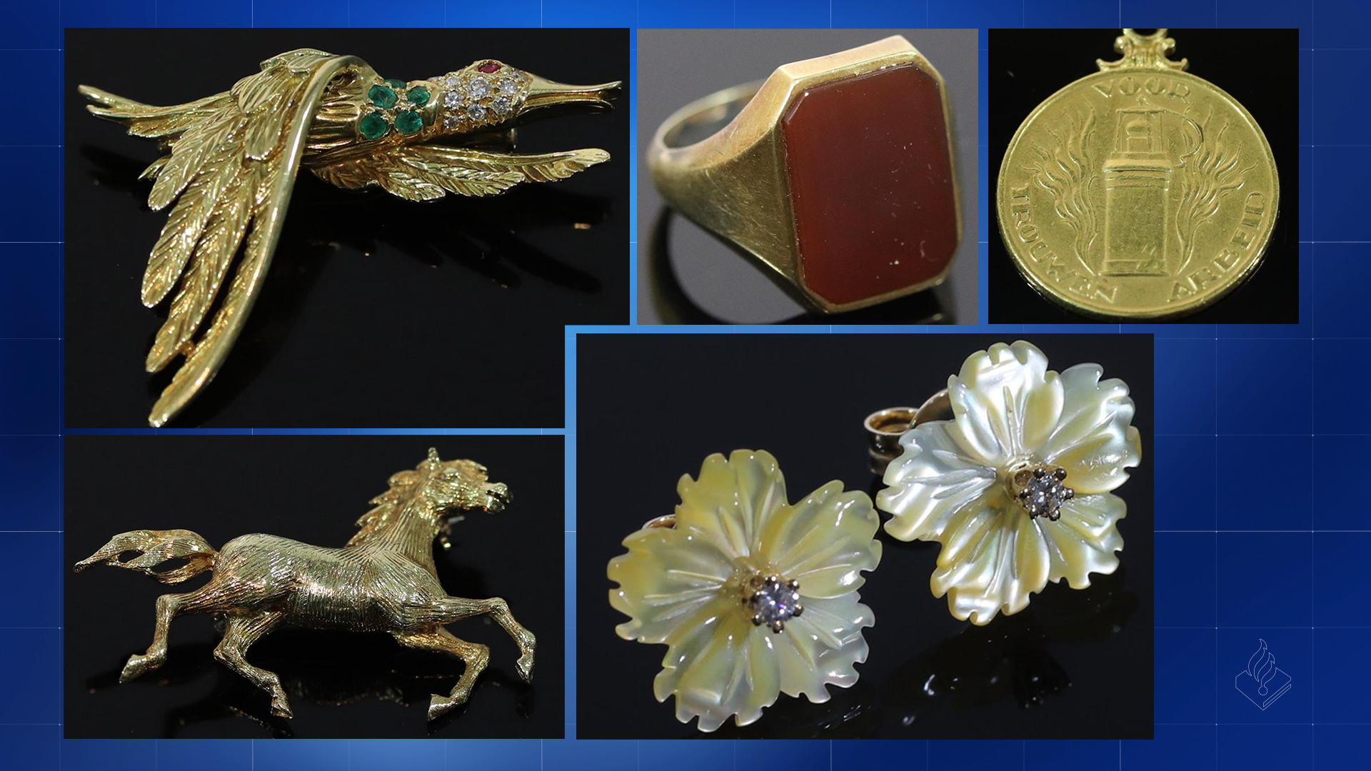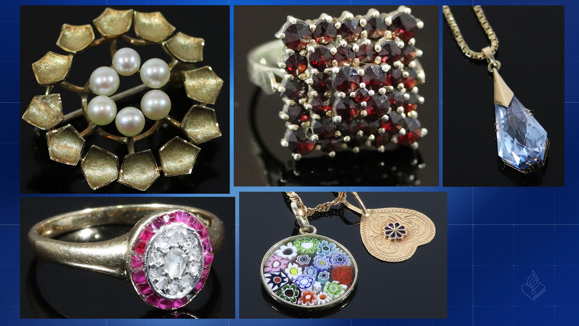 Mogelijk zijn deze sieraden ergens te koop aangeboden of is het iemand opgevallen dat personen in zijn/haar omgeving plotseling over veel geld beschikten.