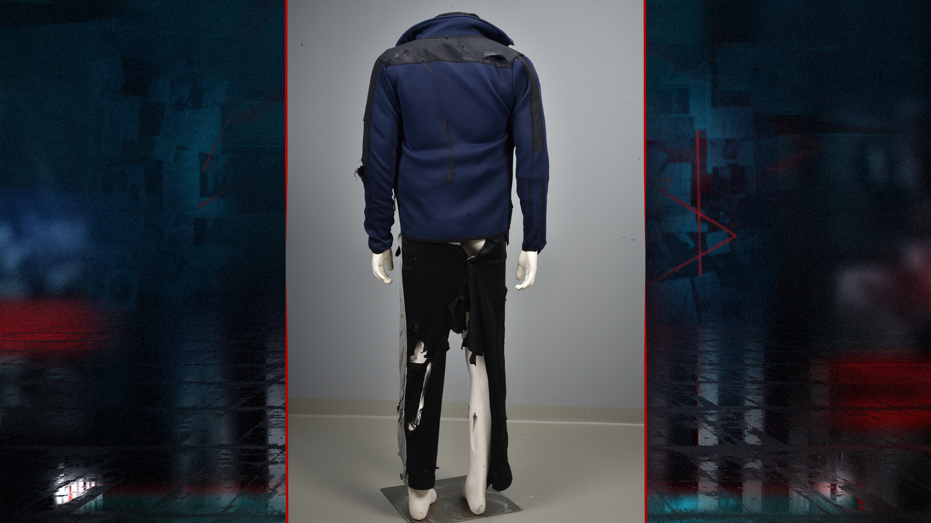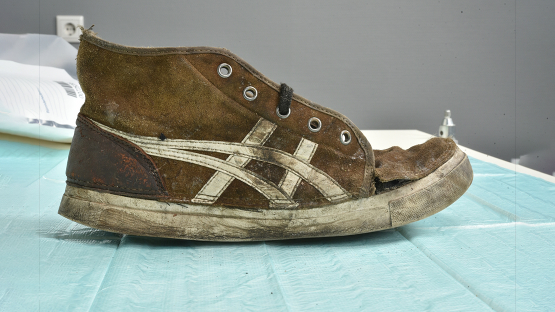 Hierboven op de foto’s ziet u de kleding die meneer aanhad toen hij werd aangetroffen. Dat betreft onder meer een zwart Puma-vest in maat 44/46 en een blauw vest van Primark in maat S. Ook had hij een zwart t-shirt aan, witte voetbalkousen van Nike en bruine schoenen van het merk Onitsuka Tiger.