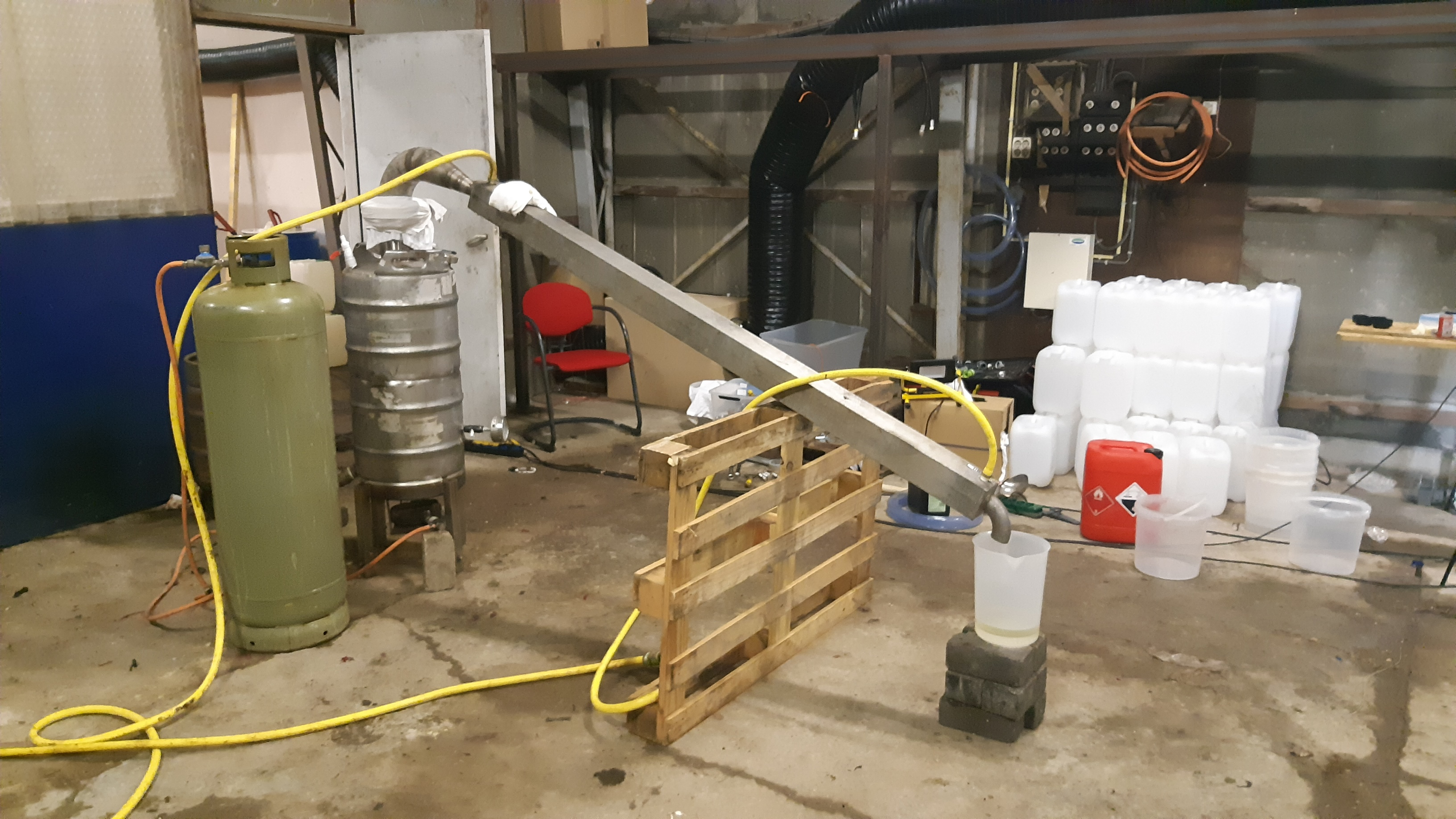 De politie doorzocht de loods naar aanleiding van een melding van rookoverlast en er werd een anijsachtige lucht geroken. Het bleek al snel een giftige zoutzuurdamp, die mogelijk dodelijk kan zijn bij grote concentraties.