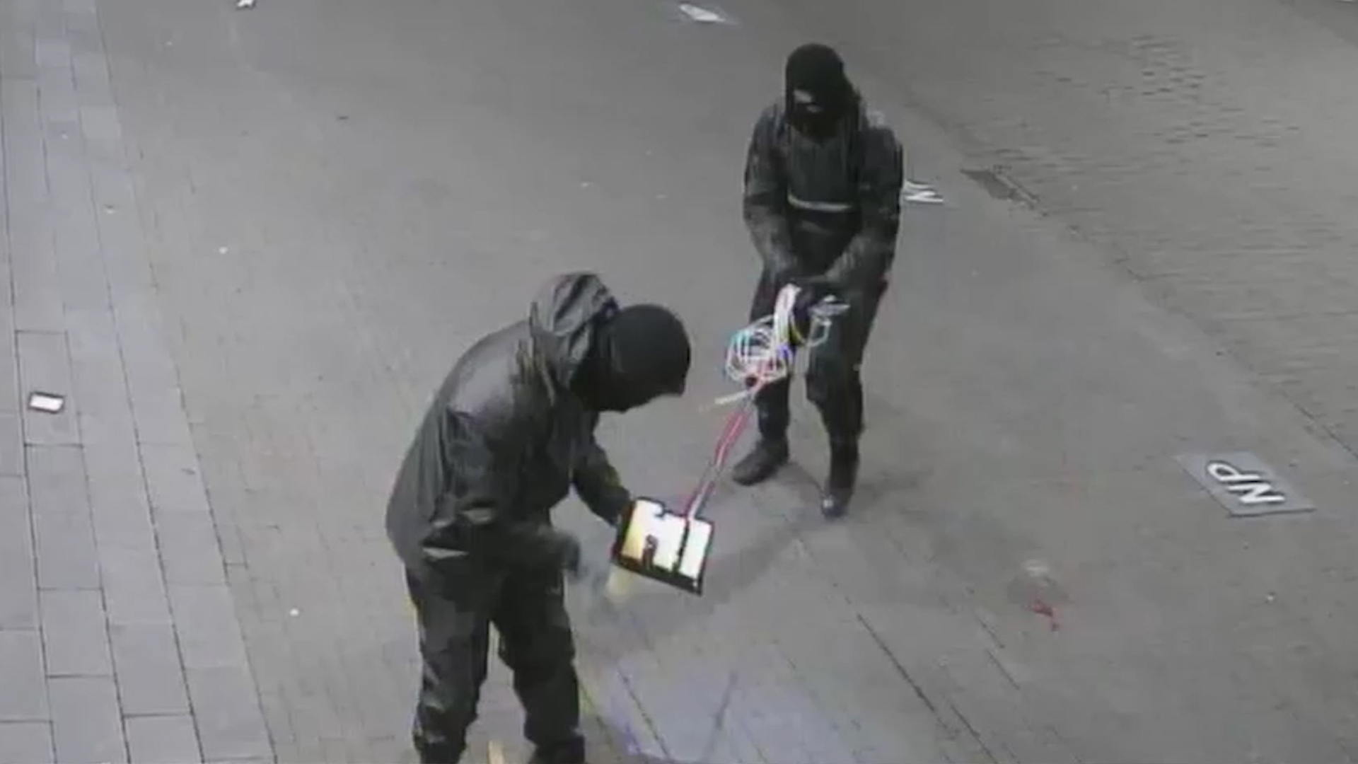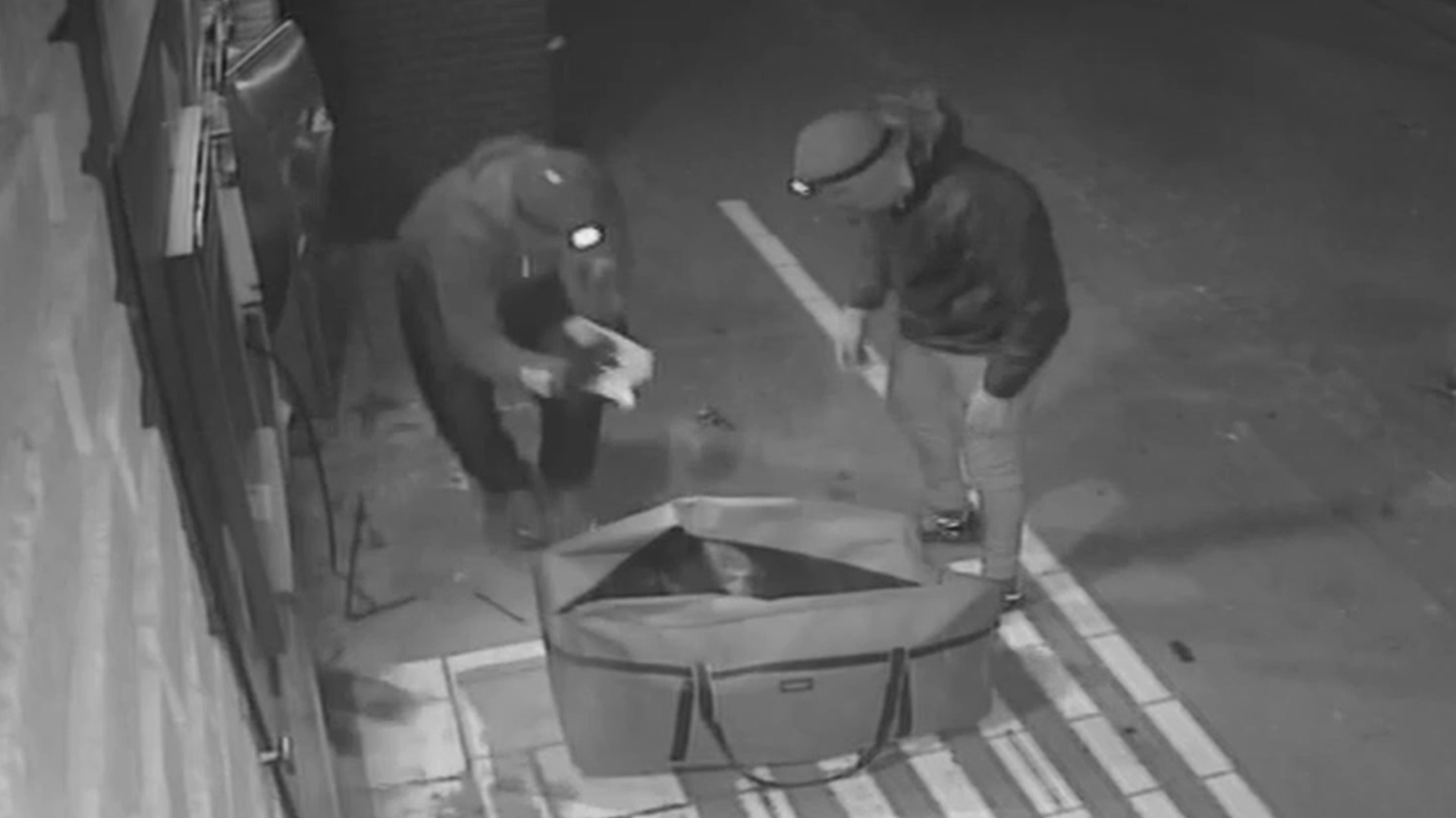 Op bewakingsbeelden is te zien hoe het tweetal rond 03.50 uur arriveert bij de Rabobank. Ze werken razendsnel en weten binnen enkele minuten de kluis op te blazen.