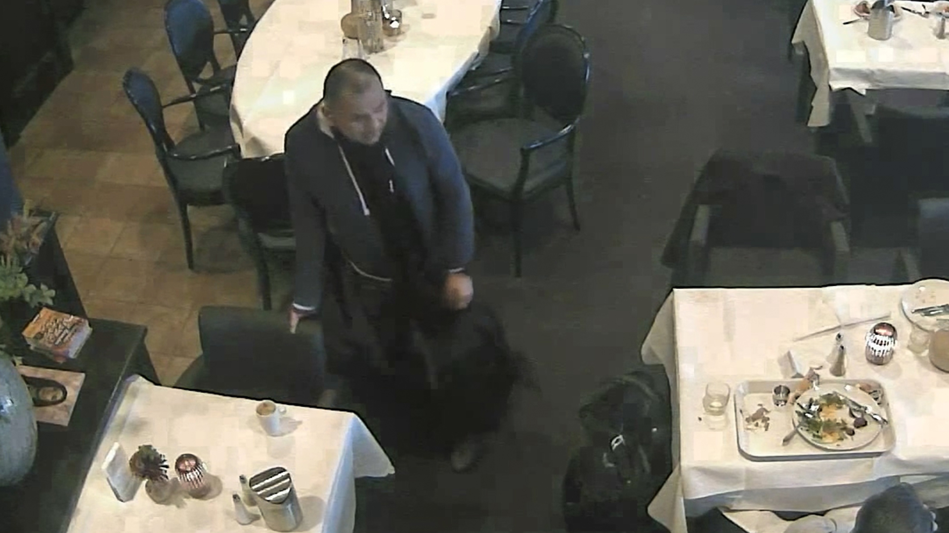 Nadat één van de mannen die zondag rond 08.00 uur een strategische plek heeft gevonden, zorgt zijn handlanger voor afleiding door met de toeristen een praatje te maken. Dan gaat het razendsnel snel: twee gevulde tassen verdwijnen onder een jas, waarop de dief ermee de eetzaal uit loopt richting de uitgang van het hotel. De handlanger komt direct achter hem aan.