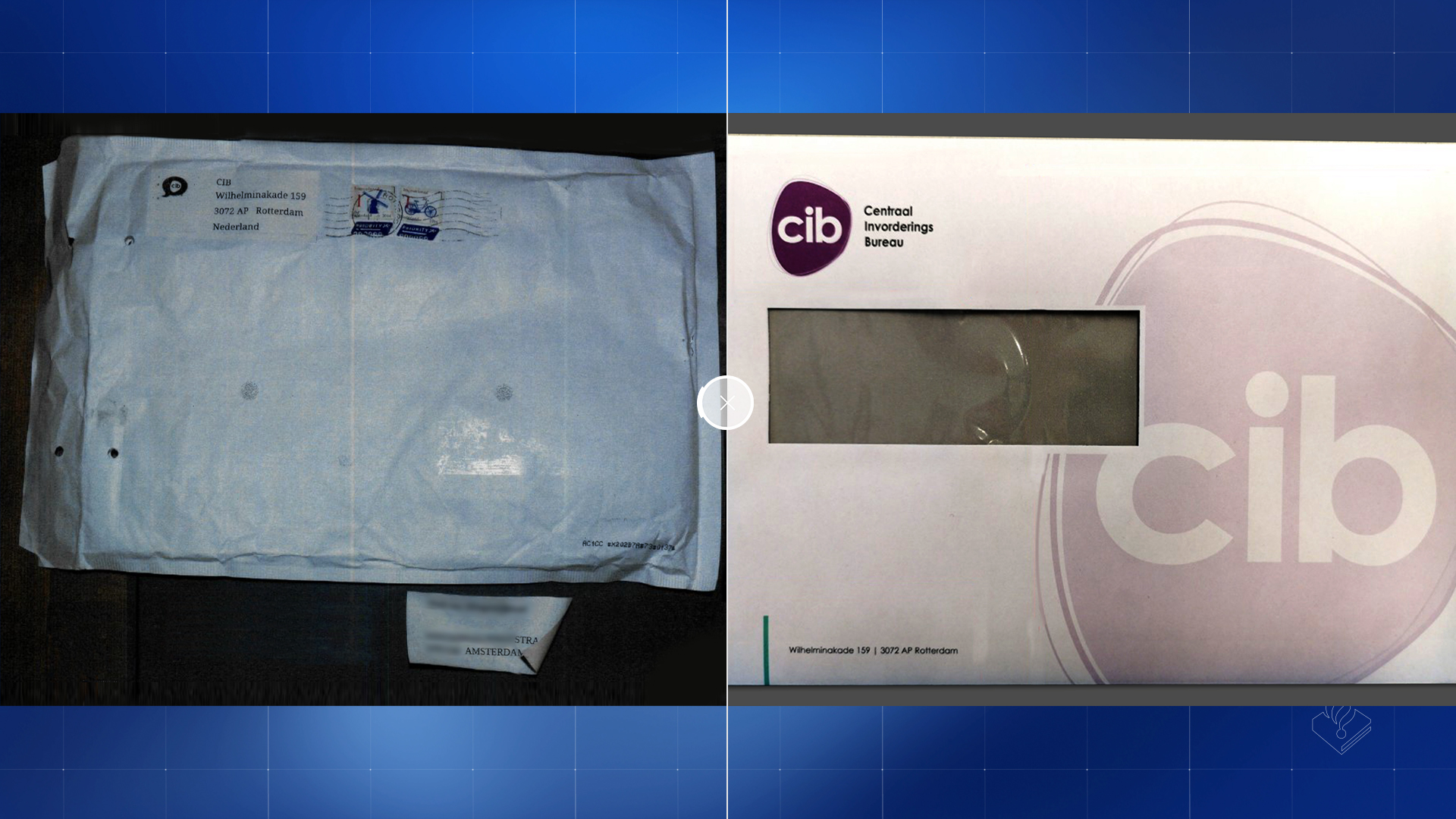 Tot nu toe heeft de afzender alle bombrieven verstuurd in een verdikte envelop. Op de envelop zijn twee losse etiketten geplakt. Op één van de etiketten staat het adres van de ontvanger, op de andere het valse adres van de afzender – zogenaamd het Centraal Invorderings Bureau (CIB) in Rotterdam. Dit incassobureau heeft echter geen enkele betrokkenheid bij deze zaak.