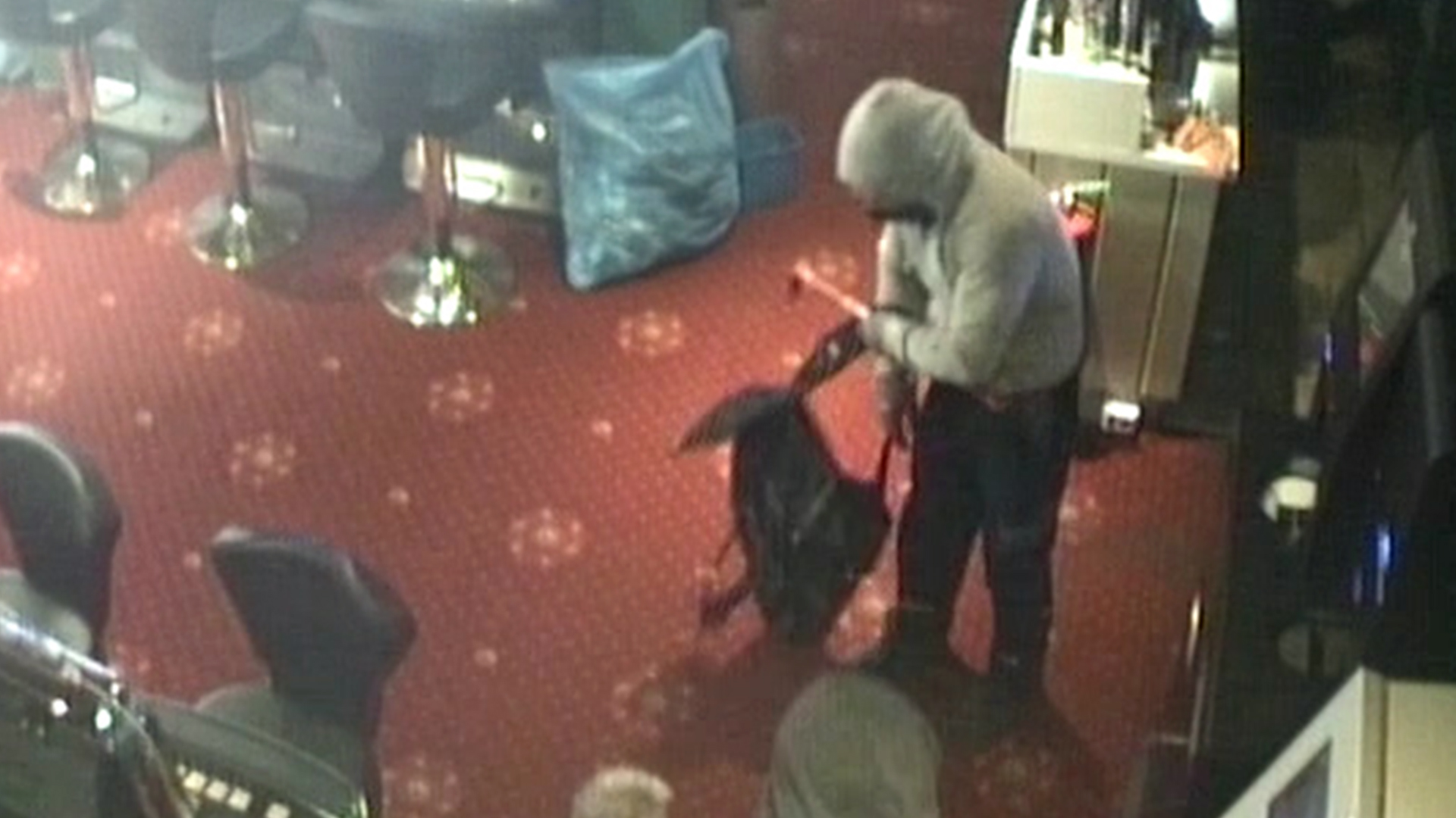 Zijn handlanger kwam hem achterna. Hij had een breekijzer bij zich, waarmee hij af en toe een medewerker een por gaf.