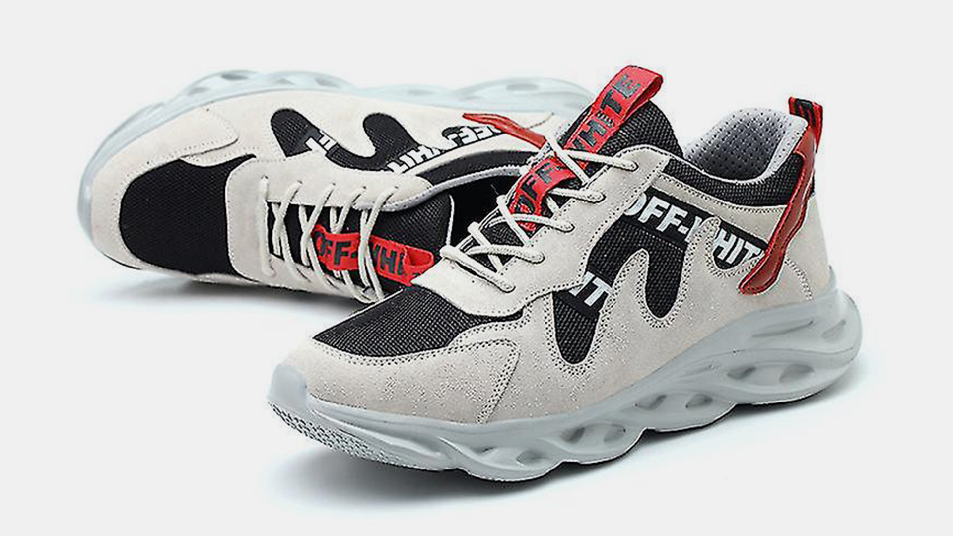 Details die aan zijn handlanger opvallen, zijn het jack van Under Armour en vooral zijn niet-alledaagse schoenen. Die zijn van het merk Off-White en zien eruit als gympen, maar het zijn in feite werkschoenen met stalen neuzen. Ook deze man heeft vermoedelijk een lichte huidskleur.