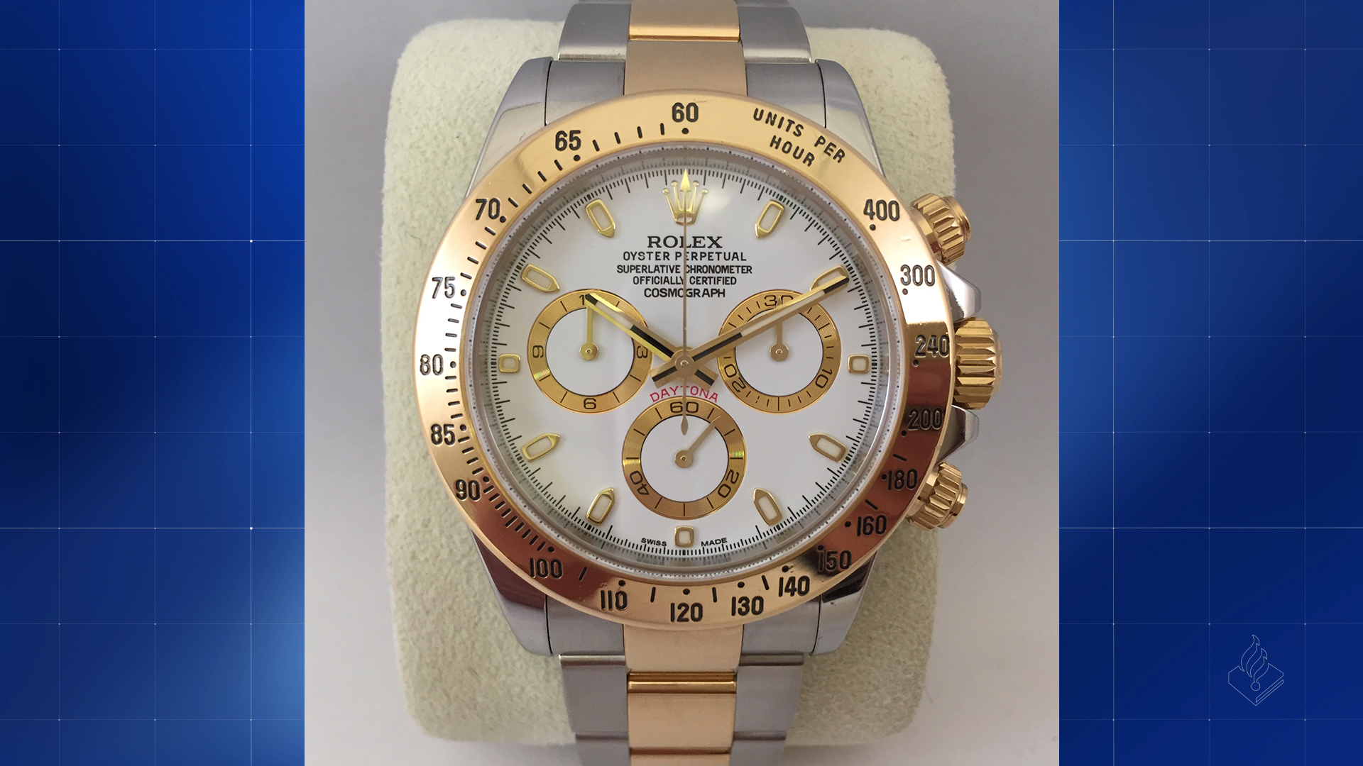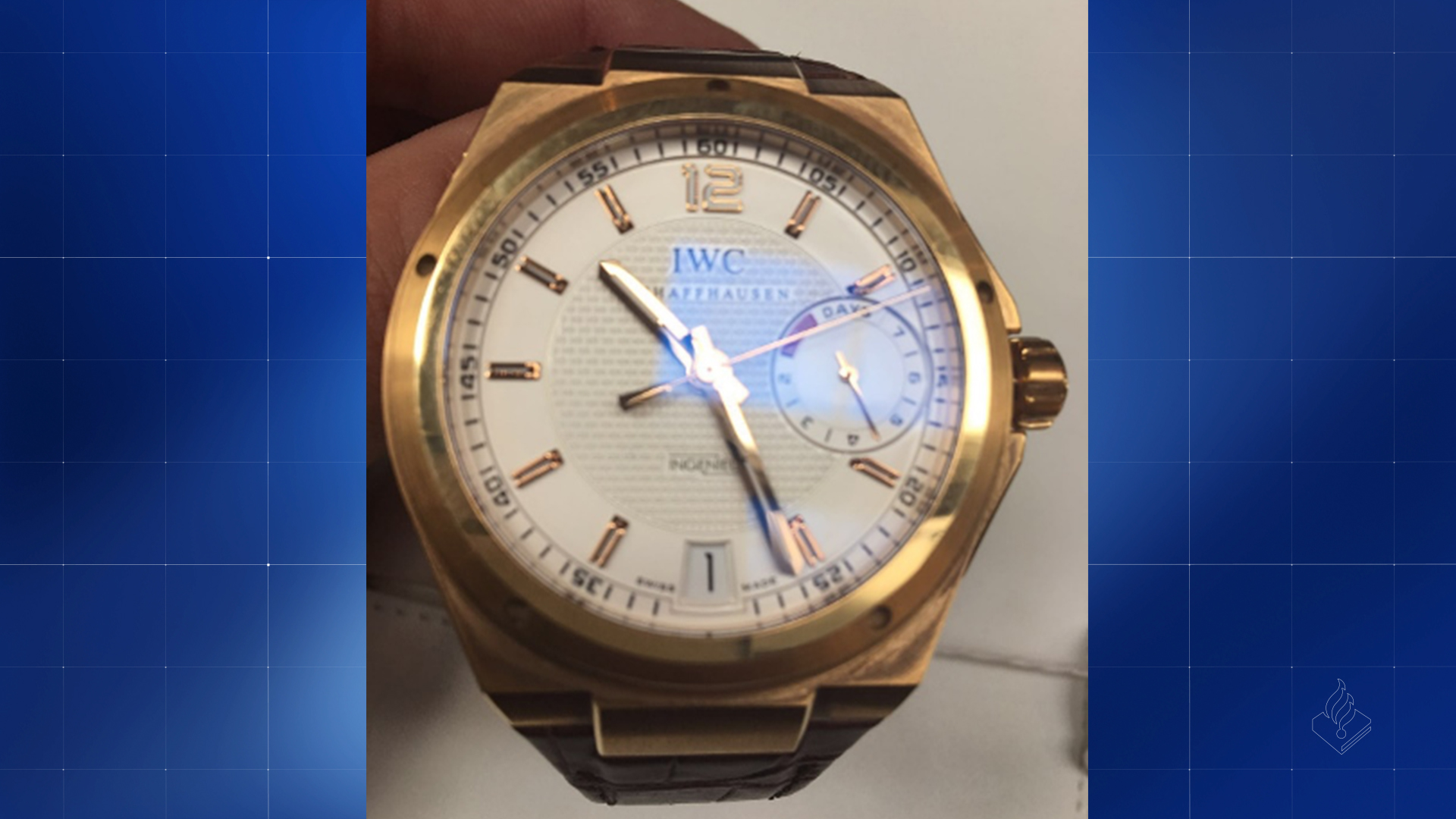Meegenomen zijn onder meer twee horloges van het merk IWC en een aantal van Rolex. Eén daarvan, van het type Datejust, heeft achterop de inscriptie “Moppie wil je met me trouwen?”