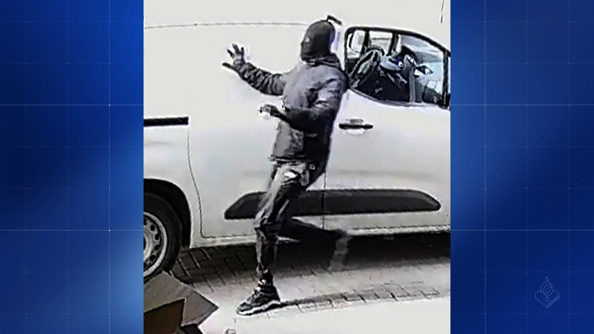 De overvallers hebben hun slachtoffers opgewacht in een opvallende grijze Renault Trafic met Frans kenteken: FN-615-ZM. Deze auto werd kort na de overval brandend ontdekt aan het Dalveen in Den Haag.