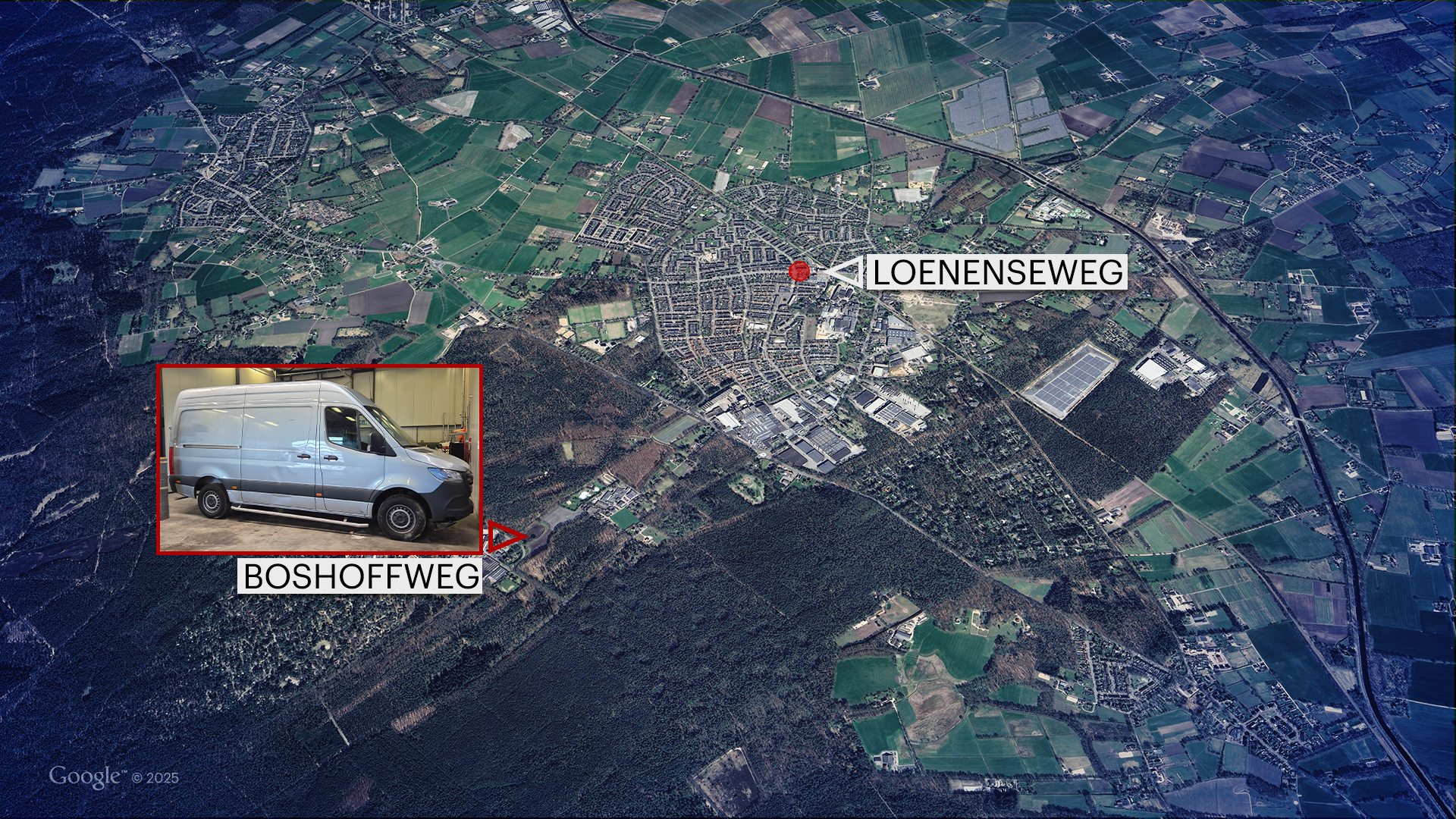 Nog diezelfde nacht is in het buitengebied van Eerbeek een gehuurde bestelbus aangetroffen met daarin twee scooters. In deze Mercedes Sprinter bevond zich in een laken ook de buit van de inbraak: onder meer sigaren, tabak en sigaretten.