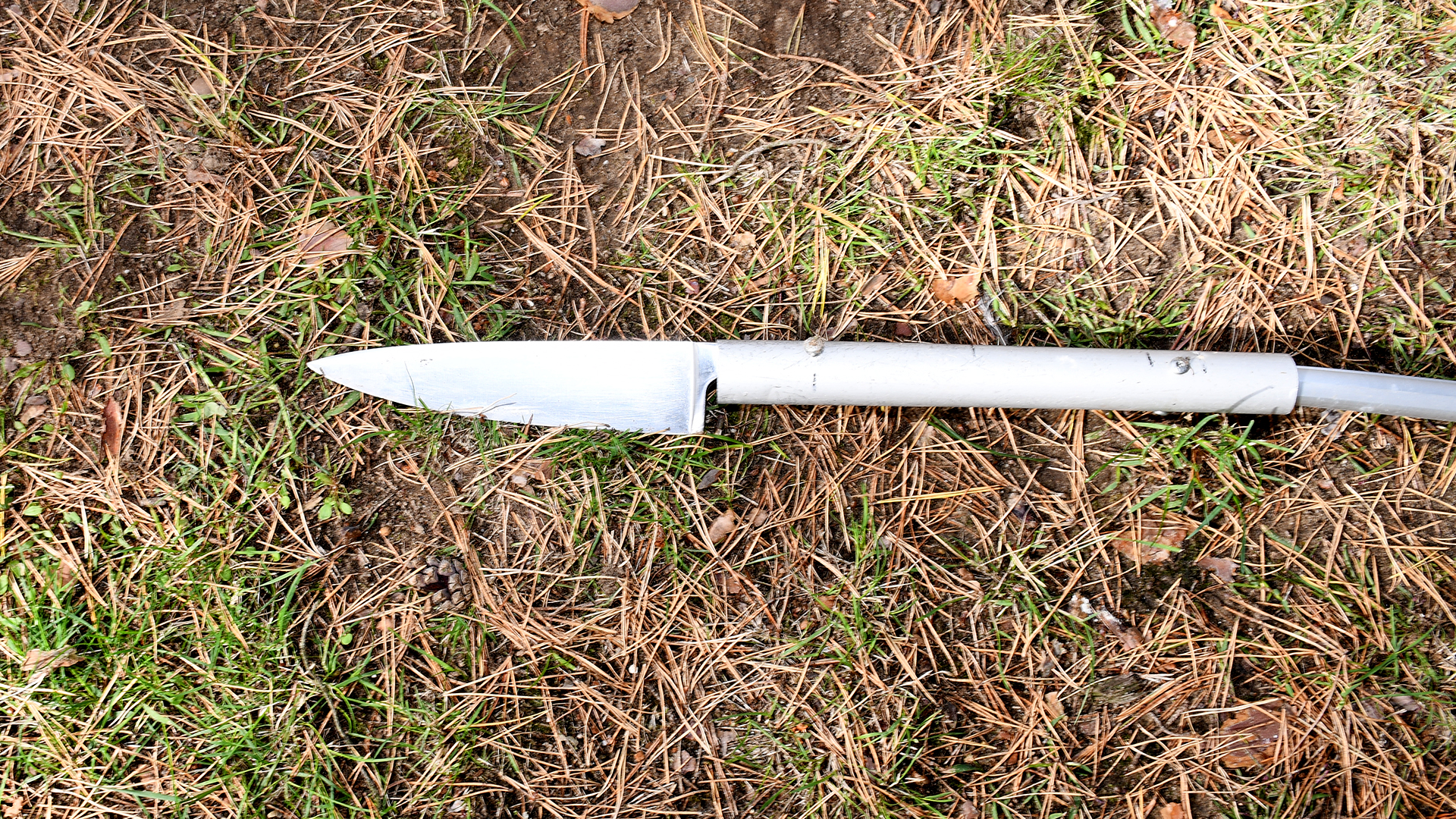 In het kader van dit onderzoek vraagt de recherche uw aandacht voor een bijzonder voorwerp dat op de plaats delict is gevonden. Dat betreft een keukenmes dat is gemonteerd op een steel van tussen anderhalf en twee meter lang.