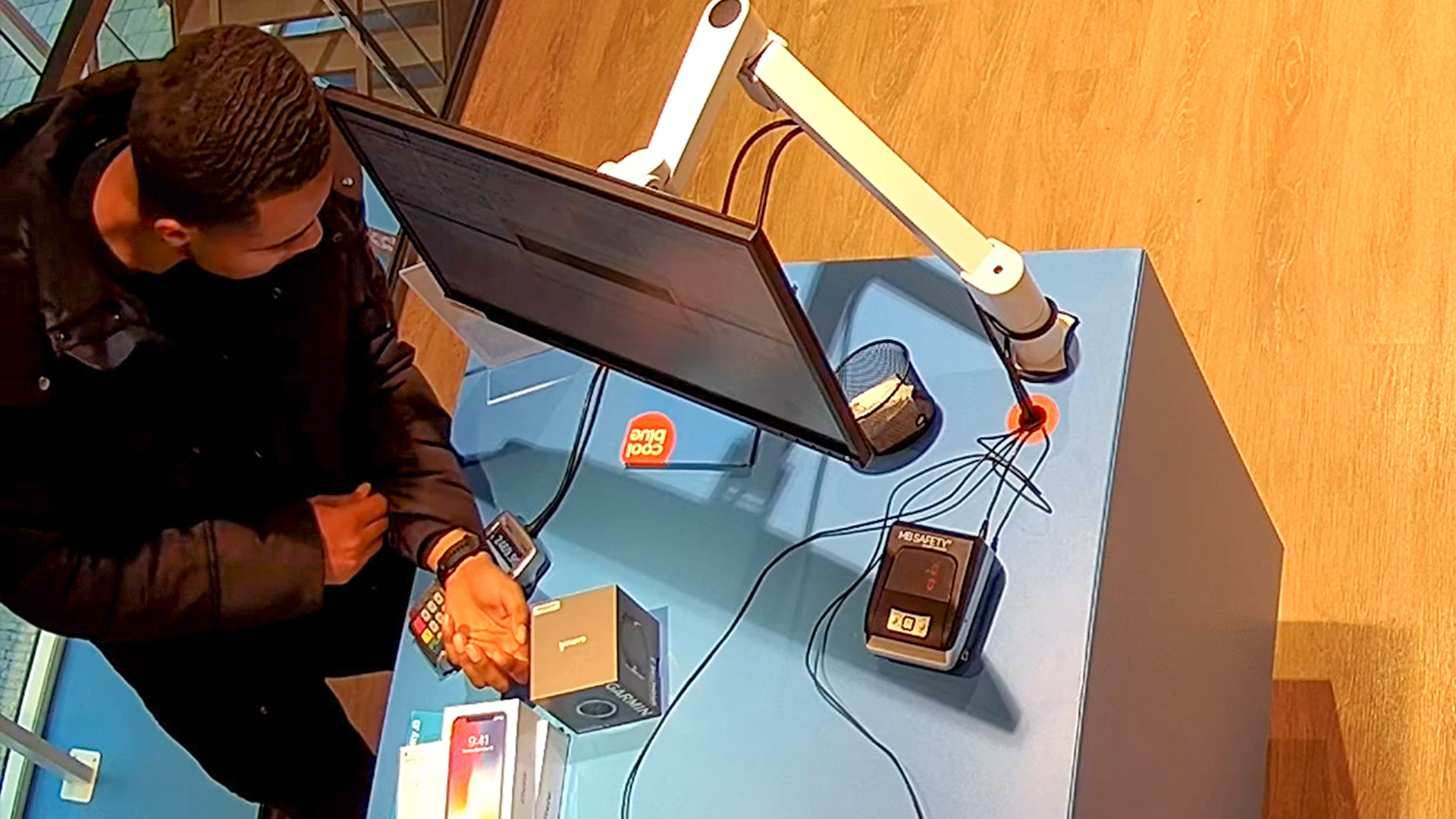 De verdachte op de beelden rekende op 11 november 2018 een flink bedrag af bij Cool Blue aan de Gustav Mahlerlaan in Amsterdam. Hij deed dat met een ‘smart watch’ waaraan de bankrekening van het Zeeuwse echtpaar was gekoppeld.