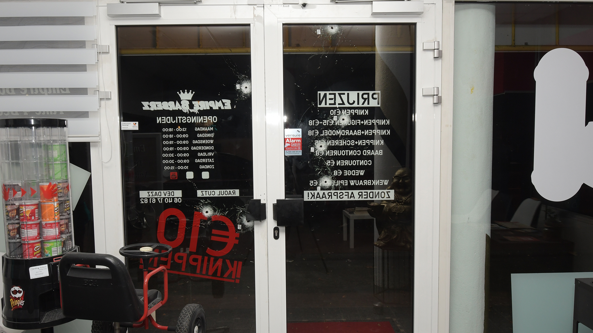 Uren voor aanvang van de rechtszaak op 30 augustus werd de kapperszaak in Rijswijk beschoten. Op bewakingsbeelden is de schutter kort te zien. Hij droeg die nacht donkere kleding en mogelijk een grijze joggingsbroek.