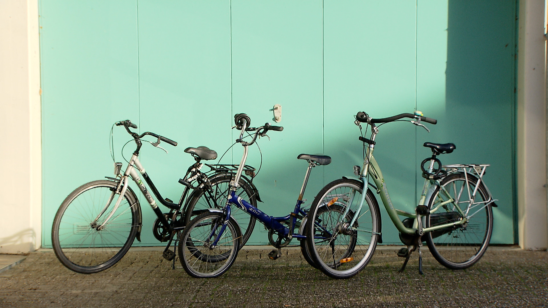 Het gaat om een blauwe vouwfiets van het merk Elite (in het midden op de foto hierboven), een damesfiets van Pelikaan (links) en een opvallend gekleurde moederfiets met lage instap van het merk Montego.