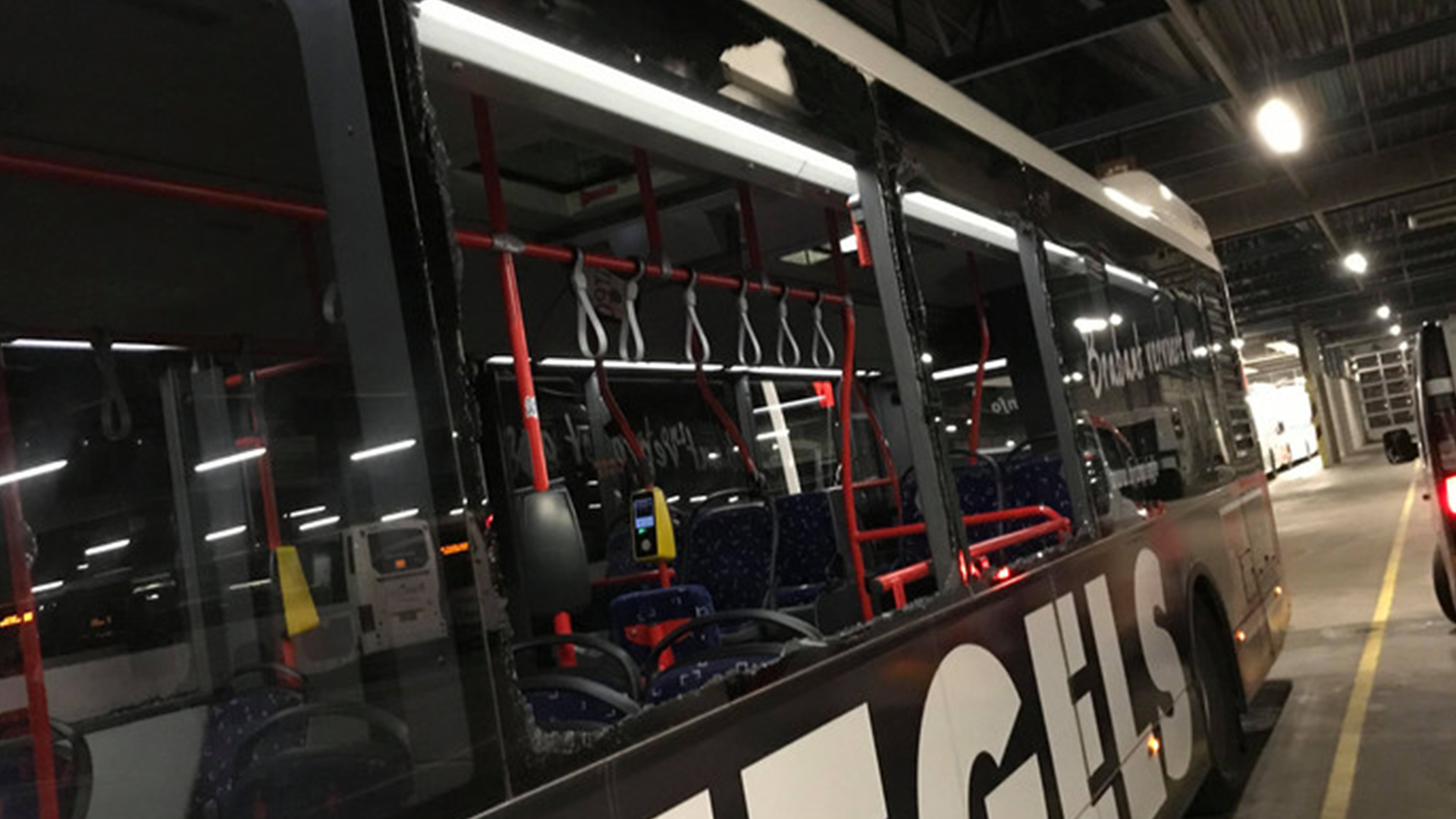 In de bus zat een aantal passagiers, maar gelukkig raakte niemand van hen gewond. Zoals op camerabeelden te zien is, vloog er veel glas in het rond.