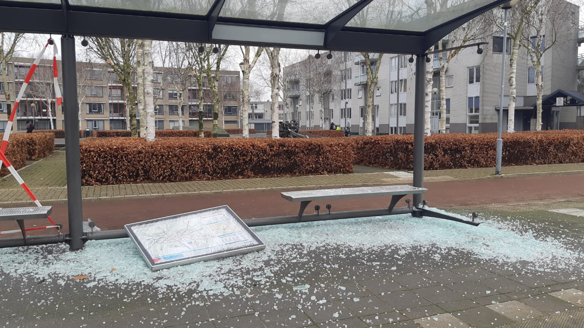 Diezelfde avond werd om 19.15 uur in de Willem de Bruynstraat een rijdende streekbus bekogeld met stenen. Ook staken jongeren een zware vuurpijl af, die dwars door de ruit van bus ging.
