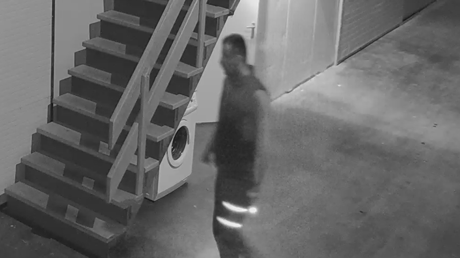 Hoewel de buitenopnamen helaas van slechte kwaliteit zijn, moeten de beelden van de man die in de loods rondstruinde herkenning kunnen opleveren. De vermoedelijke brandstichter droeg een bodywarmer over een capuchontrui of -vest, maar het meest opvallend is zijn broek: die heeft op het linker bovenbeen twee reflecterende strepen.