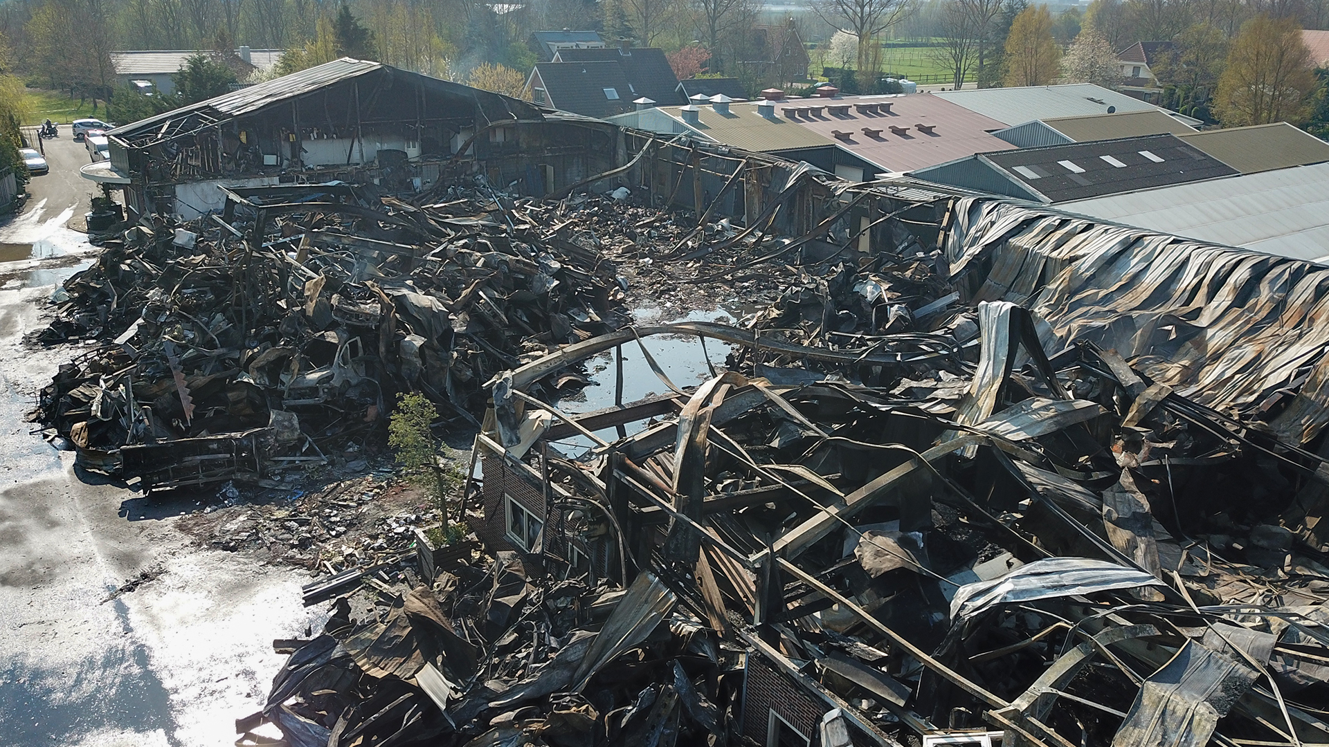Een grote brand in een bedrijfspand resulteerde in een immense schade, maar gelukkig niet in gewonden of erger. De politie gaat ervan uit dat de brand is aangestoken en beschikt gelukkig over camerabeelden van de verdachten.
