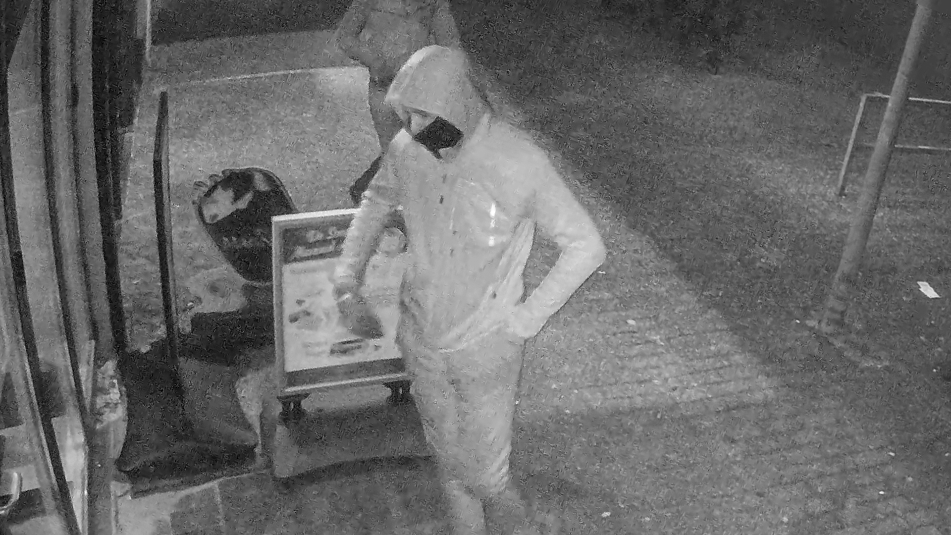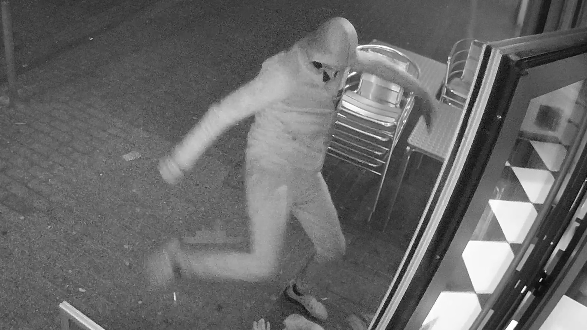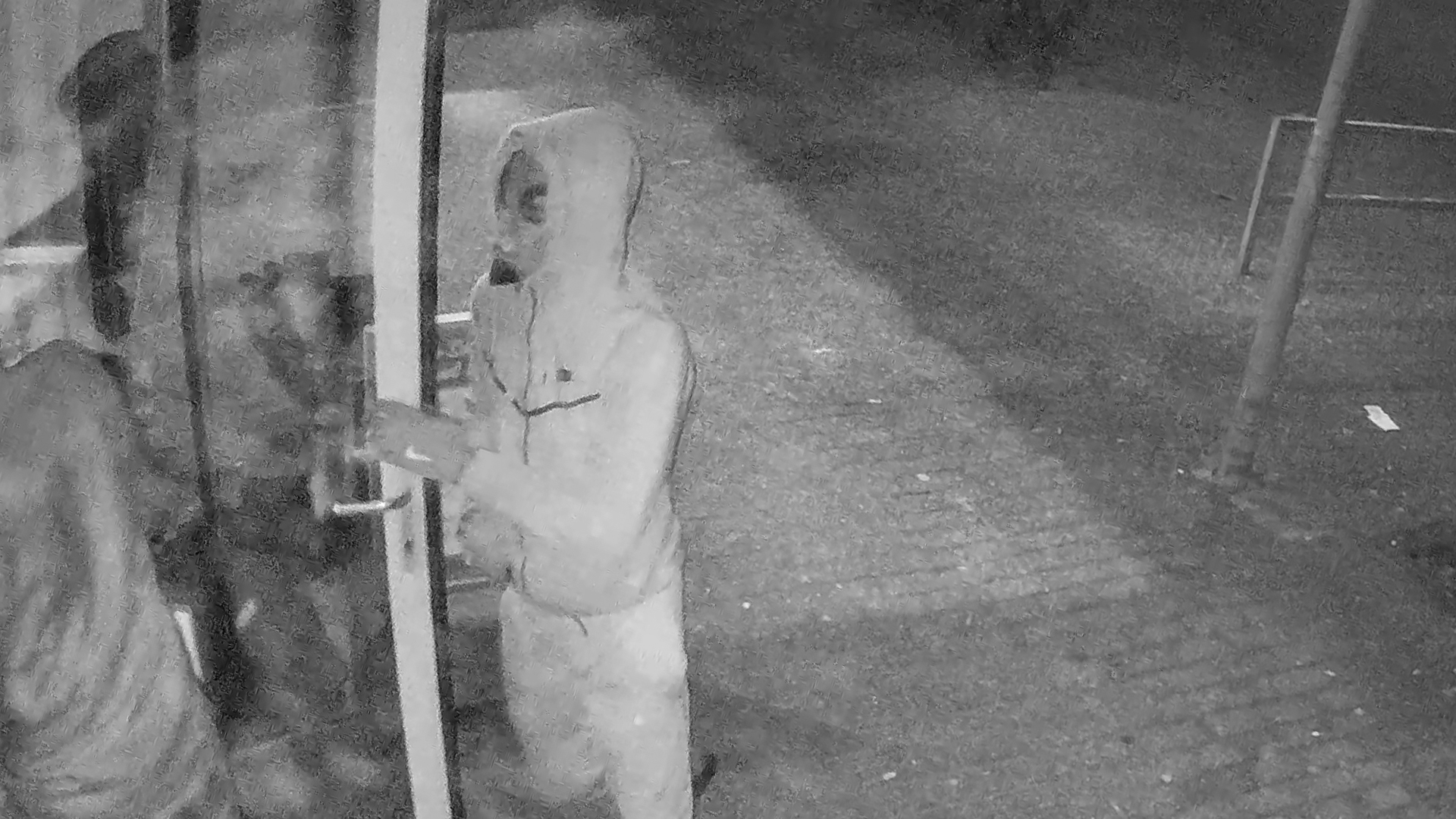 De tweede man is iets kleiner, zo’n 1.85 meter lang. Hij heeft een slank, atletisch postuur, droeg een Nike-jack en -trainingsbroek en had een opvallend duivelsmasker op. Ook zijn donkere schoenen met reflecterende accenten vielen op.