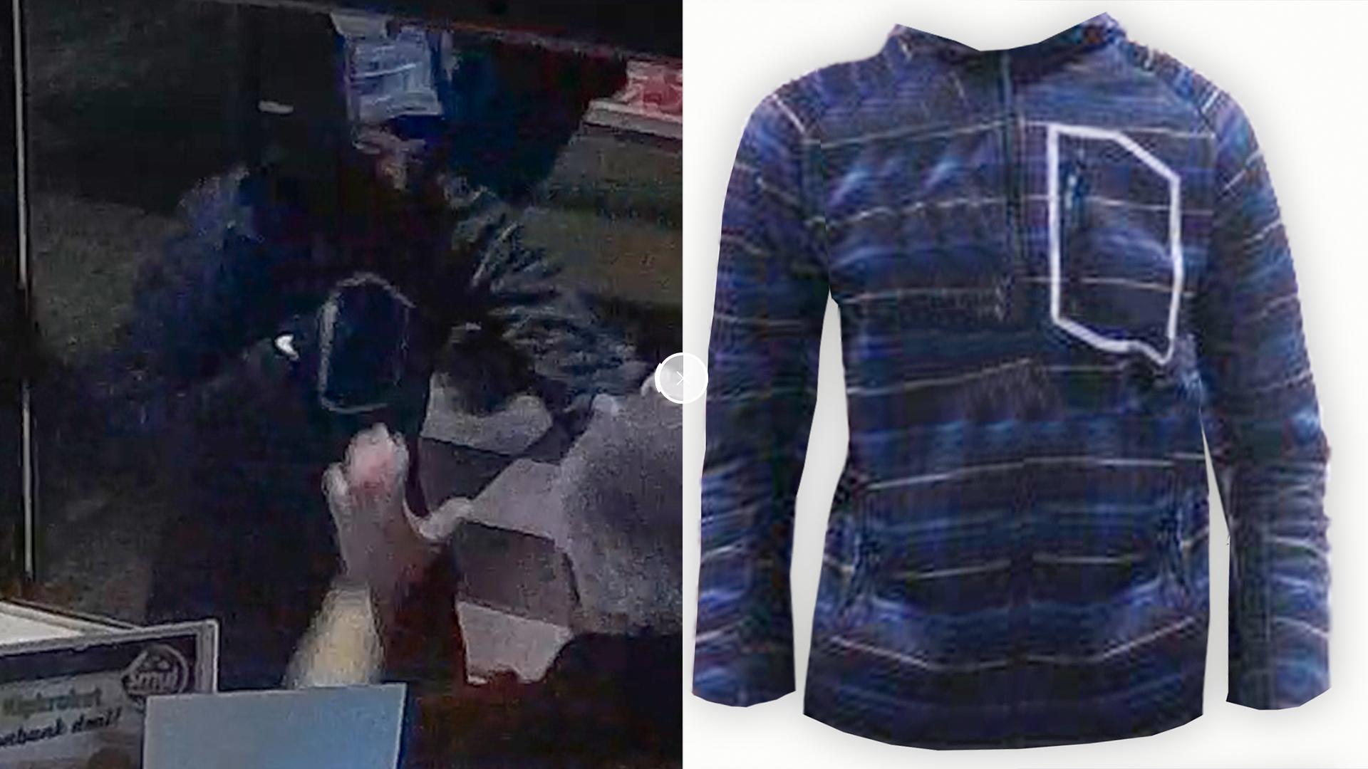 De overvaller die het slachtoffer in zijn gezicht trapte, is de langste. Hij droeg mogelijk een lichtkleurig masker. Ook had hij een opvallend donkerblauw jack aan met capuchon, horizontale strepen en een wit vlak rond de linker borstzak. Mogelijk beoefent deze dader een vechtsport.