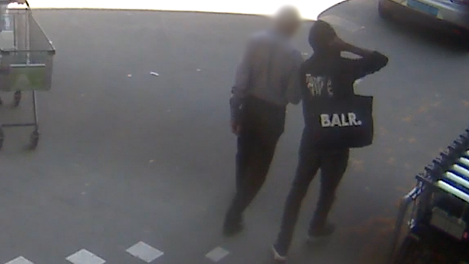 Hij droeg die dag een hoody van het merk Road to Succes met op de rug de tekst zoals op de foto. Ook had hij een tas bij zich met als opdruk de merknaam BALR.