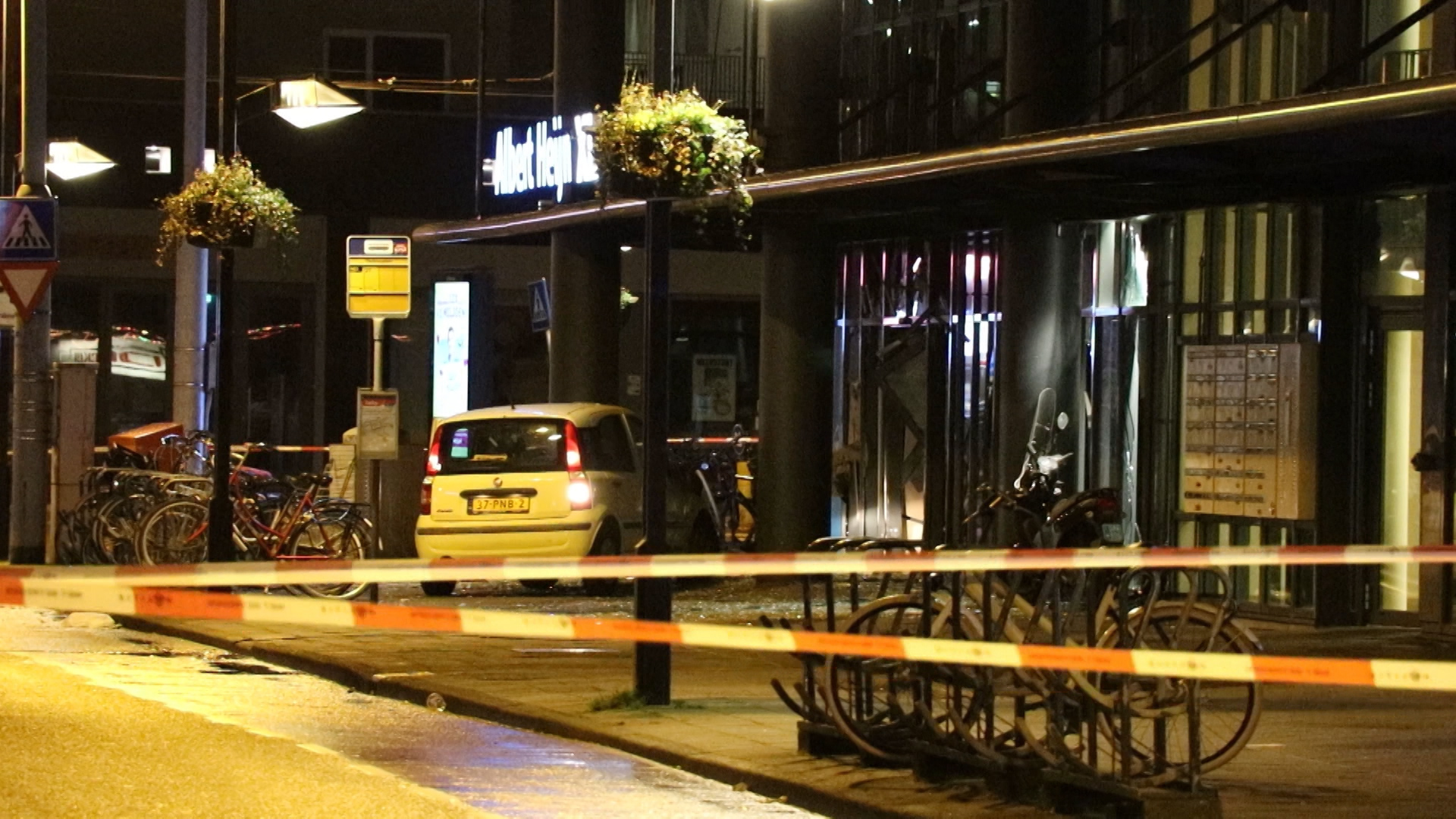 Bewakingscamera's hebben de handelingen van de daders vastgelegd. Rond 03.00 uur komt eerst een man op een scooter aanrijden en even later zijn handlanger in de gestolen Fiat Panda. Na wat voorbereidingen weten ze een flinke ontploffing te veroorzaken.