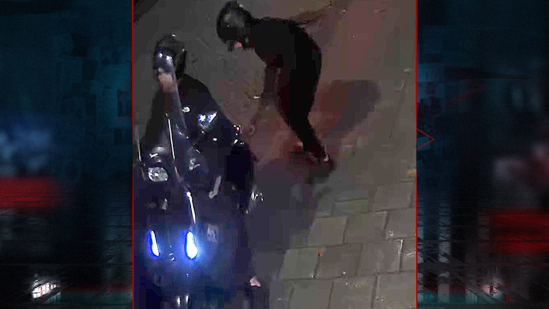 De bestuurder van de scooter heeft een lichte of licht getinte huidskleur. Hij had een grijze helm op en zijn handlanger een zwarte. Die tweede verdachte heeft kort, donker haar. Op camerabeelden is te zien dat hij vermoedelijk tape van het kentekenplaatje haalde.