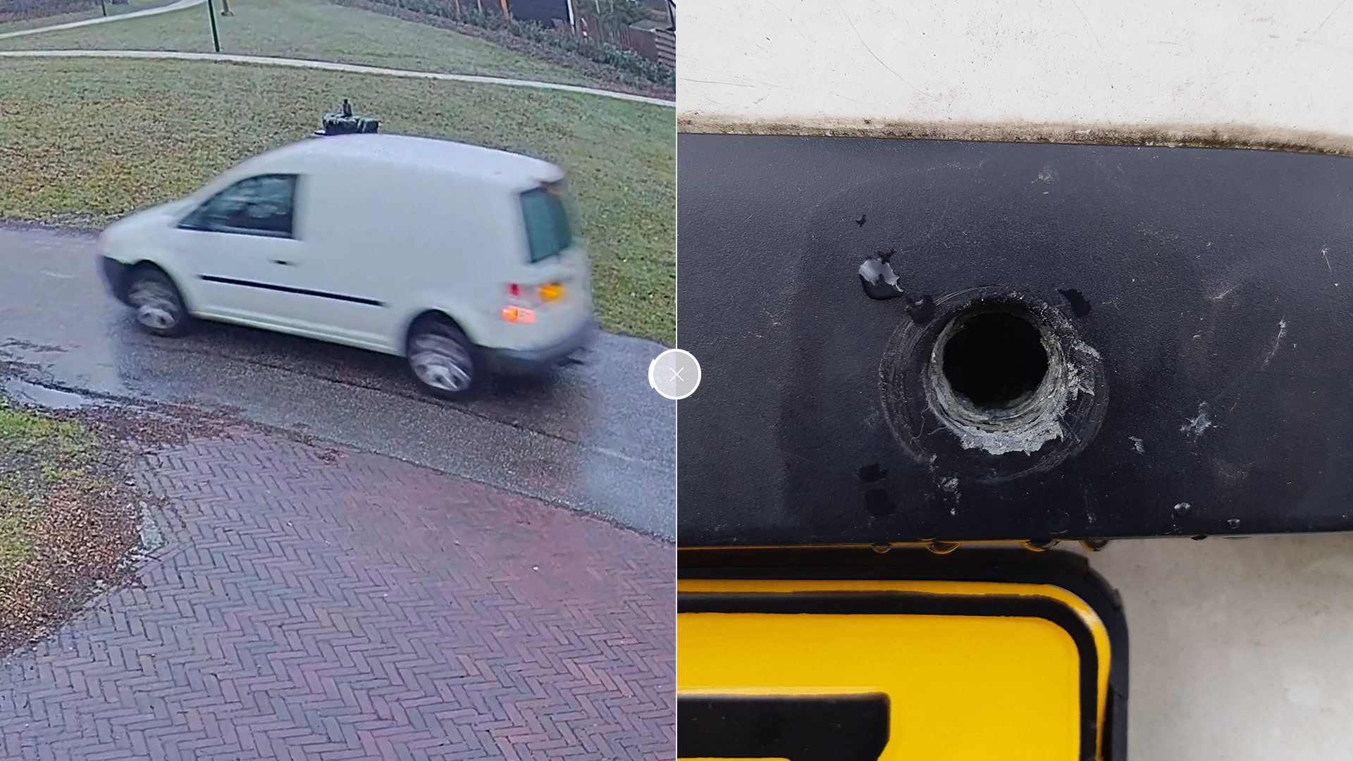 Ook op dinsdag 9 maart deed een verdachte vermoedelijk een voorverkenning daar aan de Soesterengweg. Deze man reed in een witte Volkswagen Caddy. Een opvallend detail aan die bestelauto is het uitgeboorde slot van het portier van de laadruimte.