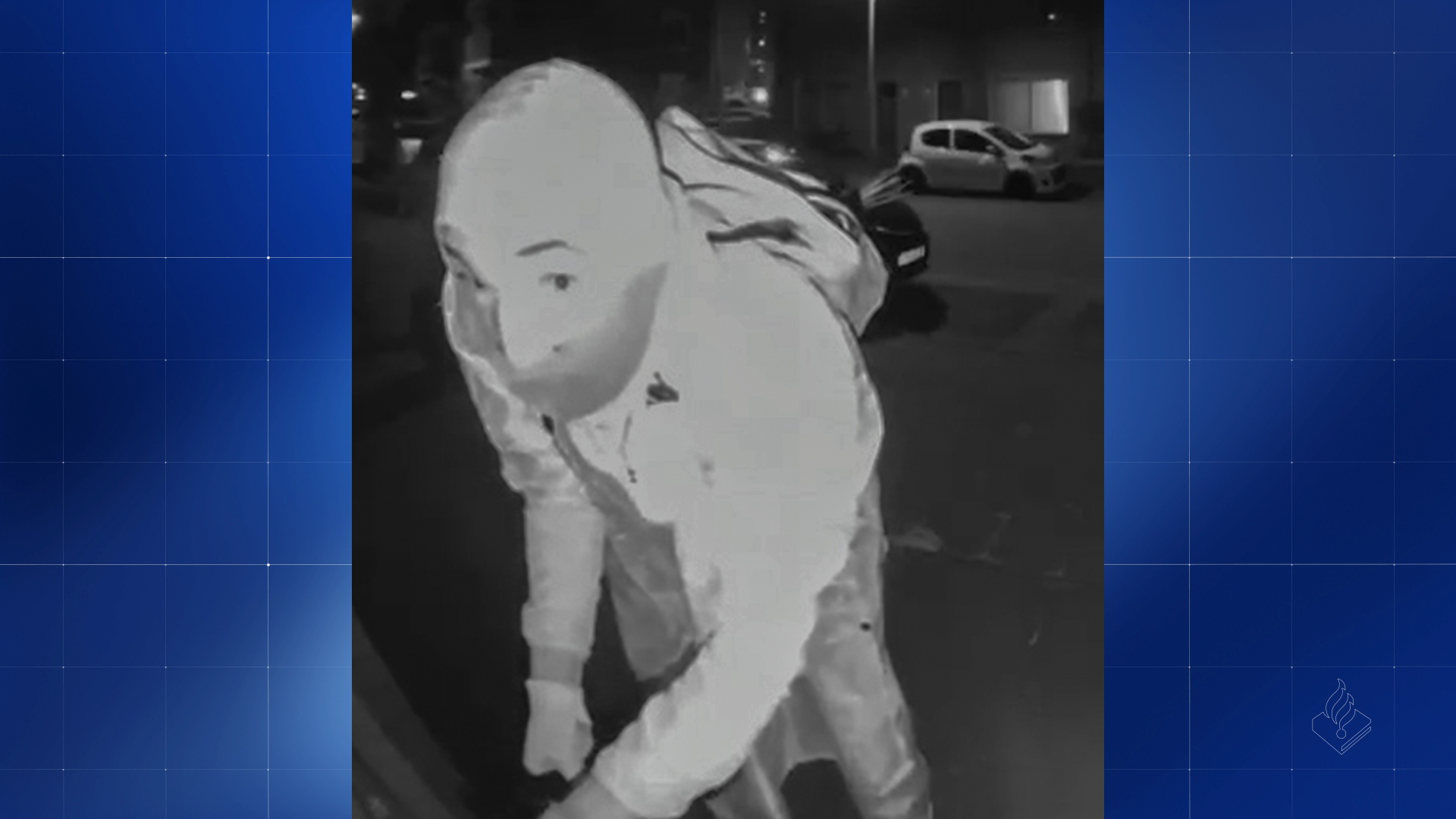 De dader die in Alphen werd gefilmd, knielde tijdens het weglopen kort bij een donkerkleurige auto; mogelijk een Ford Fiësta. Kunt u zo’n auto in verband brengen met een mogelijke verdachte, hoort de politie dat graag van u.