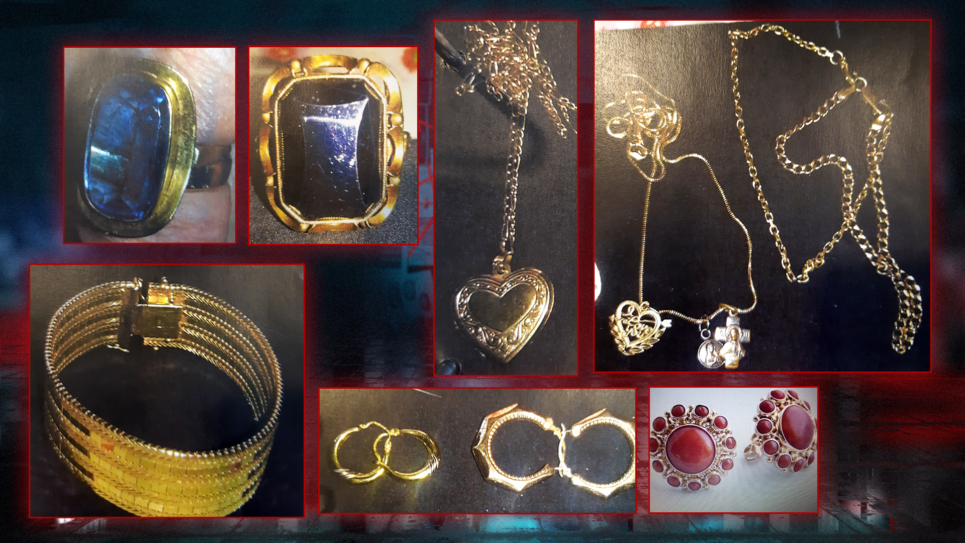 In het kluisje dat ze helaas meenamen zaten onder meer sieraden die het slachtoffer erg dierbaar zijn. Een deel ervan is namelijk van meneers overleden echtgenote geweest. Kijkt u alstublieft naar de foto’s hierboven en geef het door als u denkt te weten waar een of meer van de sieraden kunnen zijn.